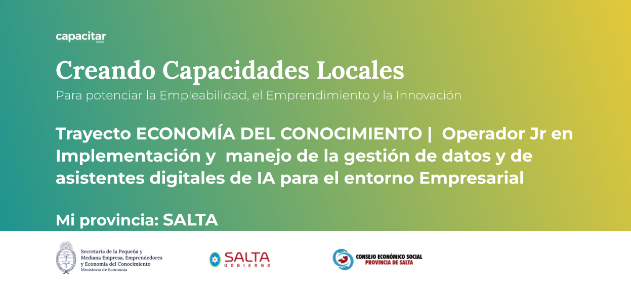 Salta Ed2- Economía del Conocimiento | Operador Jr en Implementación y manejo de la gestión de datos y de asistentes digitales de IA para el entorno Empresarial